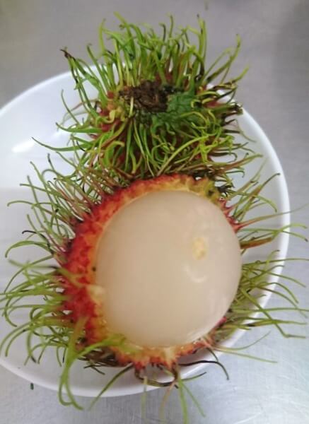 - Rambutan – ngor, spikey green and red outside shell peeled away for fleshy sweet inside, eat like an orange with seeds.