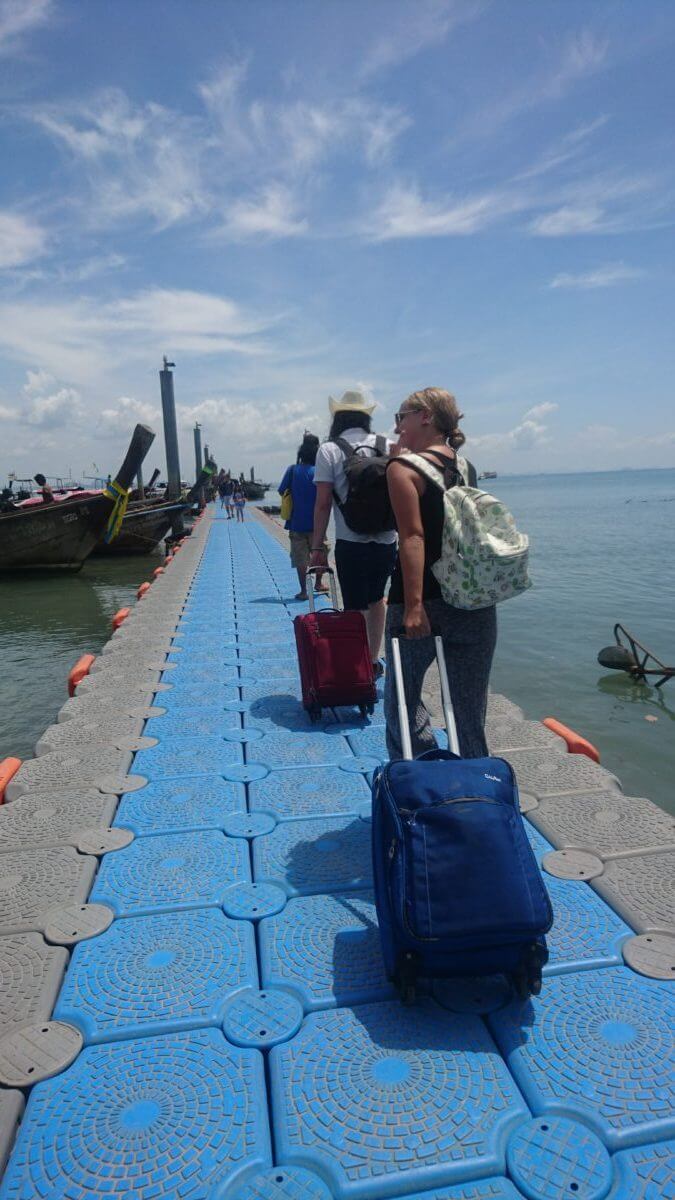 Great question! It depends where you’re going and how often you’re going to move around. I had a small 23 L backpack that was fine for up to 5 days (my clothes are small!), in addition to a medium size messenger bag (which could carry all the Day Pack items above!). You may arrive to an island in the water. They will help you with a small suitcase but laugh at/with you for a larger one. It may be raining as you drag your wheeled suitcase around on unpaved roads, or backpack for that matter (yay umbrellas!). I found it easier to maneuver with a backpack – it kept my hands free and was easier on rough terrain, which was common. And it’s way easier to hop on the back of a scooter with a backpack than a suitcase! That being said, we stayed in budget accomodations and took budget methods of transportation to get there. The backpack did get hot on my back even with good ventilation, and I prefered wearing t-shirts over tank tops because of the straps rubbing on my shoulders. The backpack does mark you as a budget tourist immediately. However, a roller suitcase is totally doable, as you can see below. I saw them everywhere in every context, just make sure it’s no larger than carry-on size, that’s where it gets complicated!